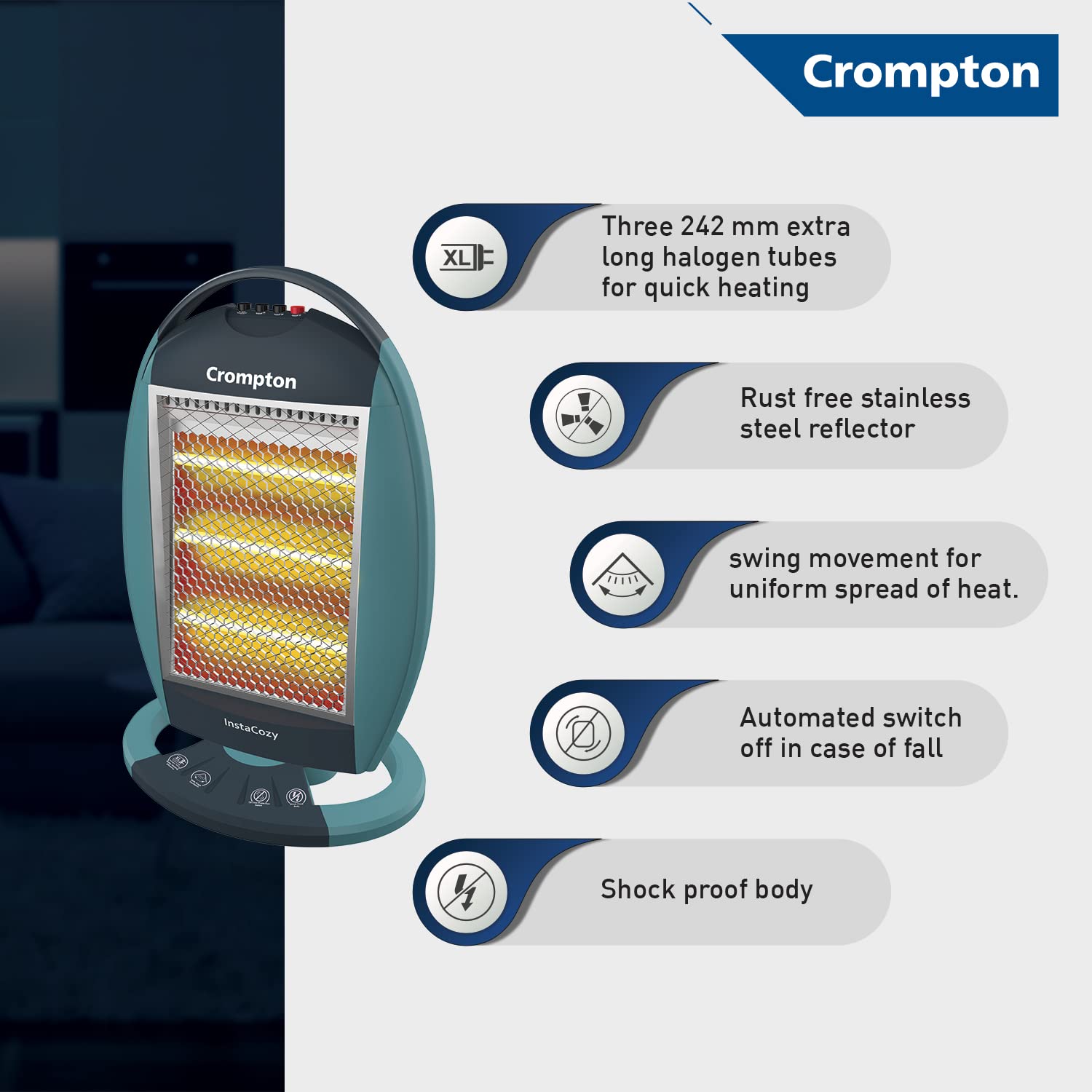Crompton Insta Cozy 1200 Watt Halogen Room Heater with 3 Heat Settings(Grey Blue)
